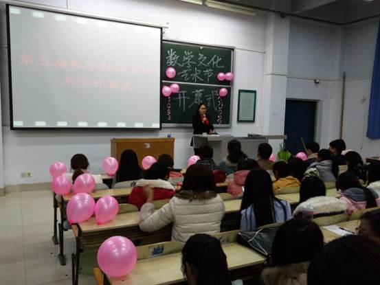 2015年11月20日晚上7点,数学与统计学院第五届“数之韵”数学文化艺术节开幕式于B合六隆重举行。党总支副书记苗宝军,辅导员杜鹃,员工会主席童伟,团总支副书记庞娇燕,社团部部长赵晓晗,三大社团会长及全体大一新生参加了此次“数之韵”文化艺术节开幕式。